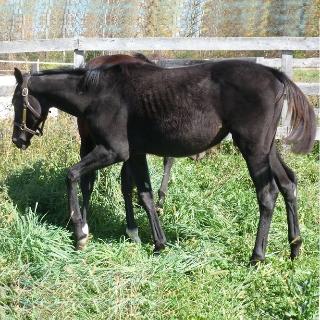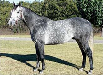| At Damrock Farm, we take sales preparation very seriously. Proper sales prep can mean the difference between being a top seller at a sale and an also-ran or even worse, a no-sale. If your horse is prepped at Damrock, you can be assured that he or she will bring every dollar that previous care, bloodlines and conformation will allow. Sales prep agents, Damrock Farm included, do everything in their power to make their client's horse look more attractive to the buyer than the horse in the next barn. The most well-bred horse in the world will not bring top dollar if he is not in optimum condition when he arrives on the sale grounds. While at Damrock, your horse will receive a diet, exercise and grooming program that will have him in peak condition and able to show of his best attributes at sale time. Your Damrock Farm prepped horse will get noticed! When your horse arrives at Damrock, usually 90 days before sale time, he will initially be stalled and just allowed to settle in for two or three days. The first few days, to help prevent possible colics, he will receive only as much good hay as he can eat. Once he is comfortable in his new surroundings, concentrates will gradually be added and the amount of hay will be decreased to reach a good balance allowing for both growth, weight gain and safety in his diet. Sale horses are turned out at night so that they don't get sunburned, yet still have time to play and be a horse. They are placed in individual paddocks, but with neighbors. This allows them the companionship that, as herd animals, they desperately need while still keeping them safe from injuries caused by too much roughhousing. The last few weeks before the sale, the horses are kept inside to accustom them to the routine at the sales barn. Every horse that comes to Damrock for prep will first spend a few days working in the round pen to develop respect for the handlers. Our round pen is 80 feet rather than the traditional 60 feet to minimize the possiblilty of joint damage, especially in young horses. I have found that this initial round pen training makes future work with the horse safer and more enjoyable for all concerned, including the horse. Proper round penning teaches a horse to look to the handler as a leader and helps the horse to understand that the handler can and will gain control without hurting or intimidating him. This eliminates many battles that at some other facilities take place on the end of a lead shank, where the possibility of injury to handler or horse is much greater. While in the round pen, I start working with the horse's feet and body, getting them accustomed to lifting their feet and allowing their legs and body to be handled. At the sales, many buyers will want to feel the horse's legs, looking for any indication of swelling or heat that might not be noticeable just by looking. They may want x-rays or even a scope done. All of these require that your horse be well-mannered and accepting of this type of activity. Feet need to be trimmed, some horses might need shoes. If the horse is not trained to accept such handling, many buyers will simply move on to the next horse and cross yours off their list. Once the horse is responding to the work done in the round pen, he will start learning how to properly walk beside the handler on the lead. Proper positioning with the handler midway between the head and shoulder allows buyers to easily see all four feet when the horse is shown. Your horse will learn to walk at a brisk 4 mph without dragging behind or forging ahead of the handler. He will learn proper inside and outside turns and that whoa means whoa. He will be taught the 4-point stance which both allows all four legs to be seen from both sides of the horse and when properly done, shows a relaxed and balanced horse. The correct 4-point stance places the near legs squarely under the horse with the cannon bones perpendicular to the ground. The off legs are placed slightly in, enough to show the feet, pasterns, knees and hocks while still remaining straight and balanced. If you look at the pictures below, you will see two examples of the 4-point stance, one good, one bad. You can see what a difference proper stance makes in creating a good overall picture of the horse. Along with learning good manners and proper technique, every sale horse undergoes a vigorous grooming regimen. Each day, the horses are curried, brushed and rubbed to create a beautiful, shiny, healthy looking coat. Manes are shortened a little at a time by hand pulling until they are about 4-5 inches long. I don't believe in cutting the mane to shorten it unless the mane is very thin. With an extremely thin mane, pulling can make it look scraggly and sparse. In most cases though, the manes look much better when they are pulled so that they achieve a natural look, but at the desired length. Sale horses are acclimated to clippers so that at sale time we can make them look their best by clipping fetlocks, ears, muzzles and bridle paths. Work with the feet continues every day so that any farrier work required can be taken care of, usually about every 4-5 weeks. The last trim or shoeing will take place within a few days of the sale. Last, one of the most important factors in preparing sale horses is a dedicated exercise routine. While proper weight is fairly easy to achieve, proper conditioning takes work and lots of it. At the sales, horses will go in and out of their stalls, often as many as 50-100 times a day. They will have to walk up and down in front of the buyers, sometimes several times if a buyer is very interested. A horse who is not in condition will quickly tire and not show well to prospective buyers. Buyers do not want to see a horse who is dragging behind the handler, nor one who is grumpy and uncooperative because he is tired. They look for a horse who walks out of his stall willingly, moves along briskly, and seems happy and interested in his surroundings. If the horse is dragging beh