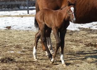 April 6, 2017 brought another colt to the farm. This one, by Teuflesberg out of the good producing mare, On Call. What an athletic guy this colt is! Very well balanced and stocky as well as extremely coordinated and brave, this colt should make his owners very happy when his time to race arrives! |