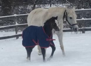 bit different than our usual type, but what she lacks in size and speed, she more than makes up for in cuteness. This little girl, Carousel, was a mystery foal. Her mother, Zelda, was rescued from an auction kill pen and her owners soon realized they had bought two horses instead of just one. Fast forward nine months to 5/8/17 and we welcomed the arrival of an apparently purebred Haflinger filly who quickly won everyone's hearts. |