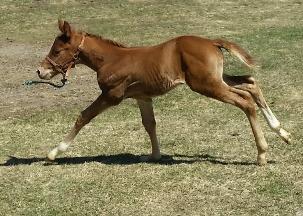 The run on colts continued with this nice boy by Honorable Dillon out of Jacqui's Promise. Though a pretty chestnut color at birth, this colt will be grey like his sire as he gets older. As a grandson of Tapit and out of a 9 time winning mare who earned over $242K in her career, this big colt has the stats to make a great racehorse. |